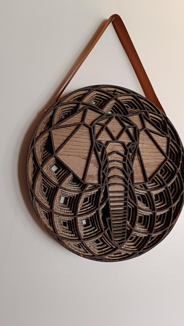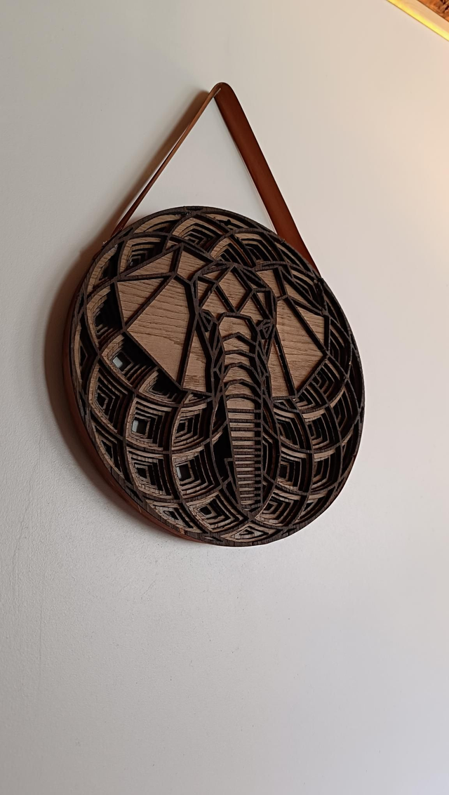 Tableau multicut Éléphant en bois – Une œuvre d'art géométrique et raffinée ✨