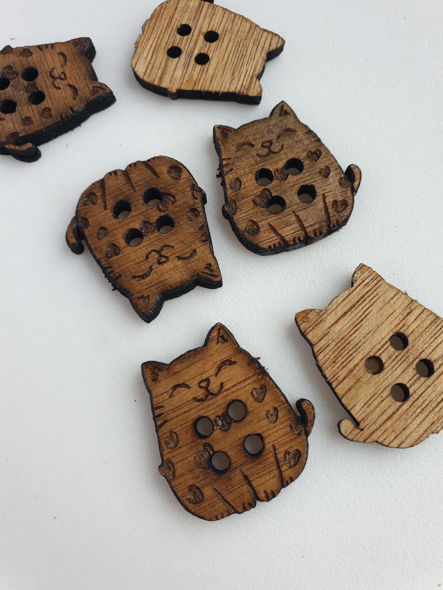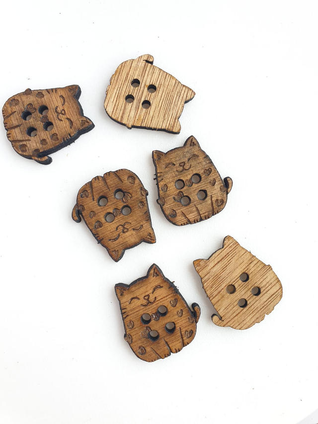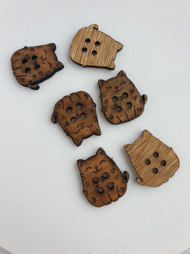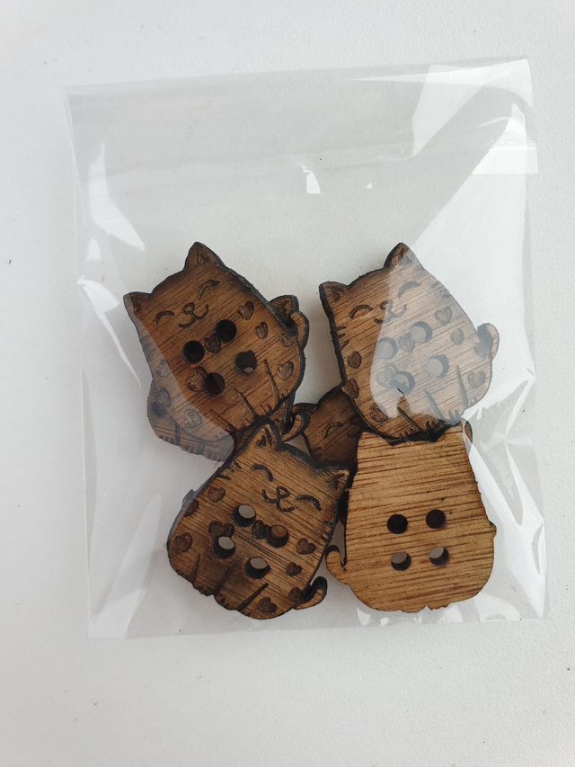 Très joli bouton chat mignon et amoureux en bois taille 3 cm vendue par lot de 5